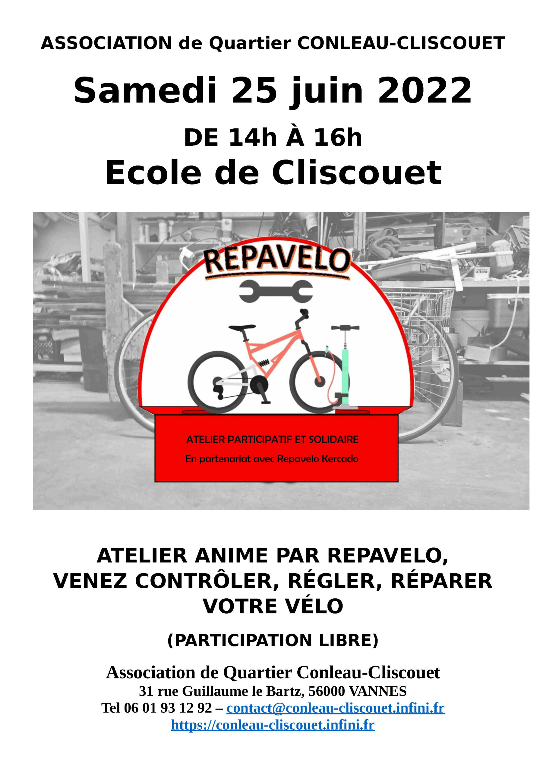 Ouvert à toutes les habitantes et habitants du quartier de Conleau-Cliscouet, un lieu ouvert pour discuter, échanger, jouer, partager de façon informelle autour d’une boisson sans alcool (café, thé, tisanes, jus de fruit, eau…) – Participation libre –